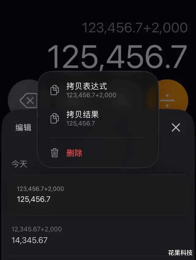 想要拷贝完整并且准确的计算结果,只能在计算器页面点击左上角进入计算记录,长按拷贝完整计算结果。